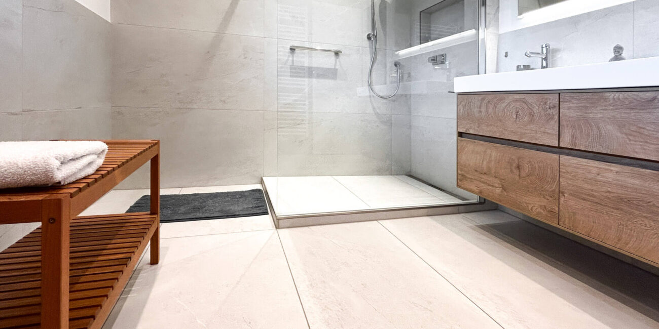 - Ebenerdige Duschen und rutschfeste Fliesen